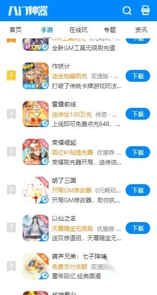 以下游戏类型应有尽有:角色扮演、卡牌回合、冒险生存、仙侠修真、江湖武侠、策略塔防,还有经典的传奇、西游、三国题材,单机玩法、GM模式、挂机玩法以及奇迹类游戏等。