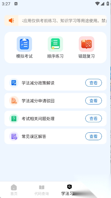 3、内部包含海量交通安全题库,帮助用户顺利通过学法减分考试。
