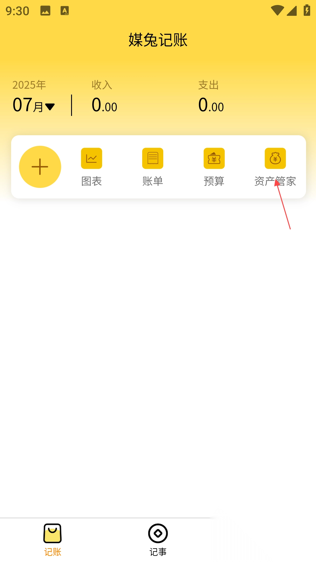 2、进入【记账】页面,点击【资产管家】图标,进入相应界面。
