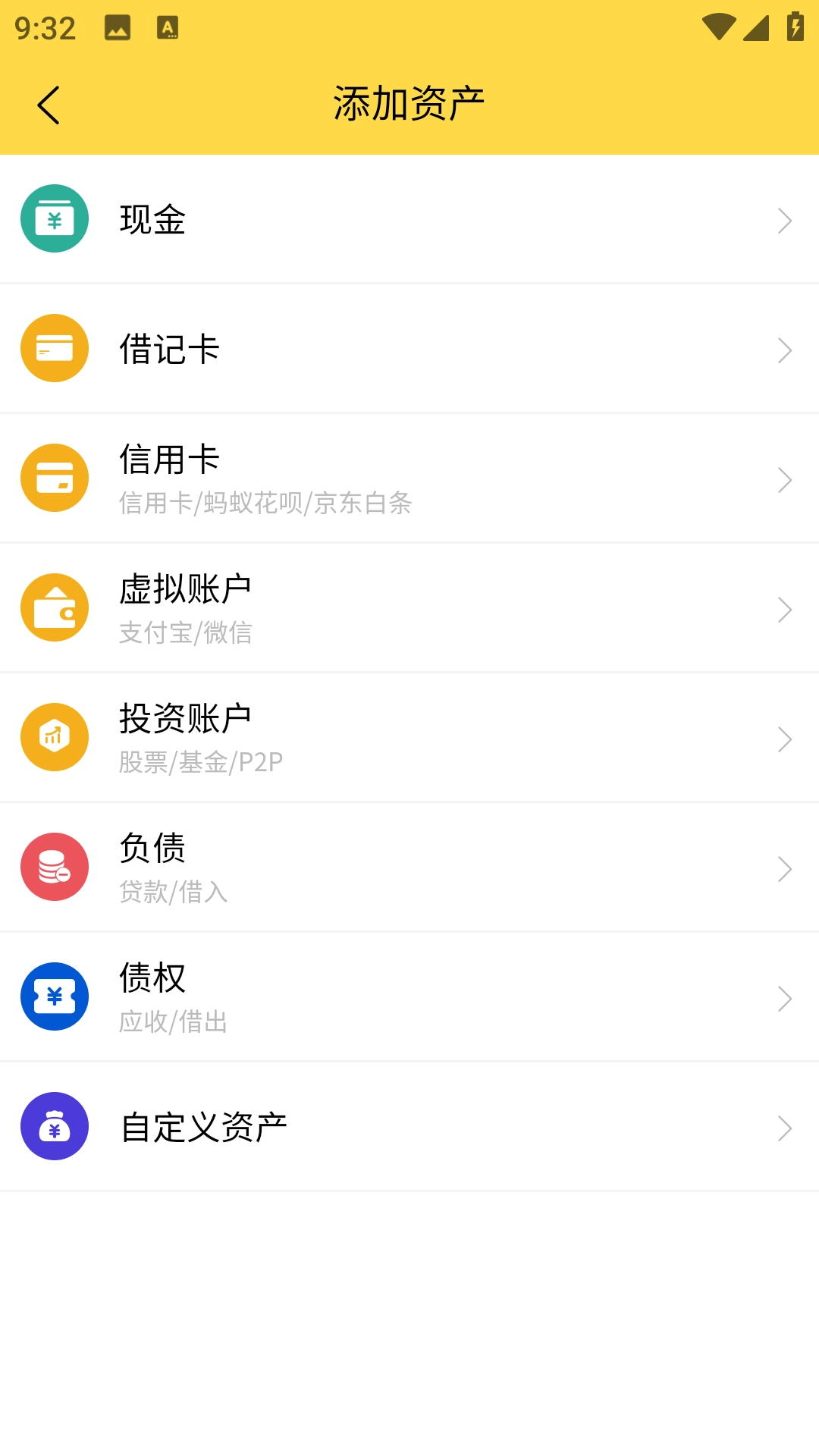 3、点击【添加资产】按钮,可输入现金、借记卡等各项资产金额,保存即可。