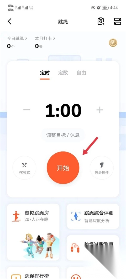 2. 在跳绳界面中点击“开始”选项。