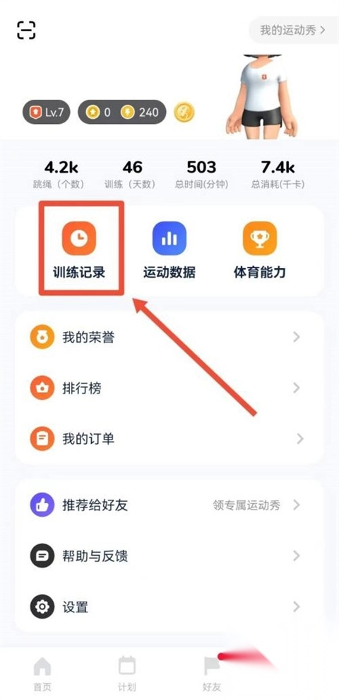 1、在我的界面找到训练记录点击。