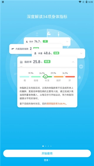 独有根据国人体质开发的强大数据模型,深度分析您的每一项健康数据指标,第一时间发现内脏脂肪增高、骨量降低、水分流失等身体状态滑坡迹象,及时提醒最应警觉或改善的体征。