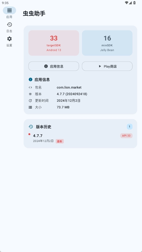 4. 进入日志页面,即可查看应用SDK版本更新的详细完整记录。