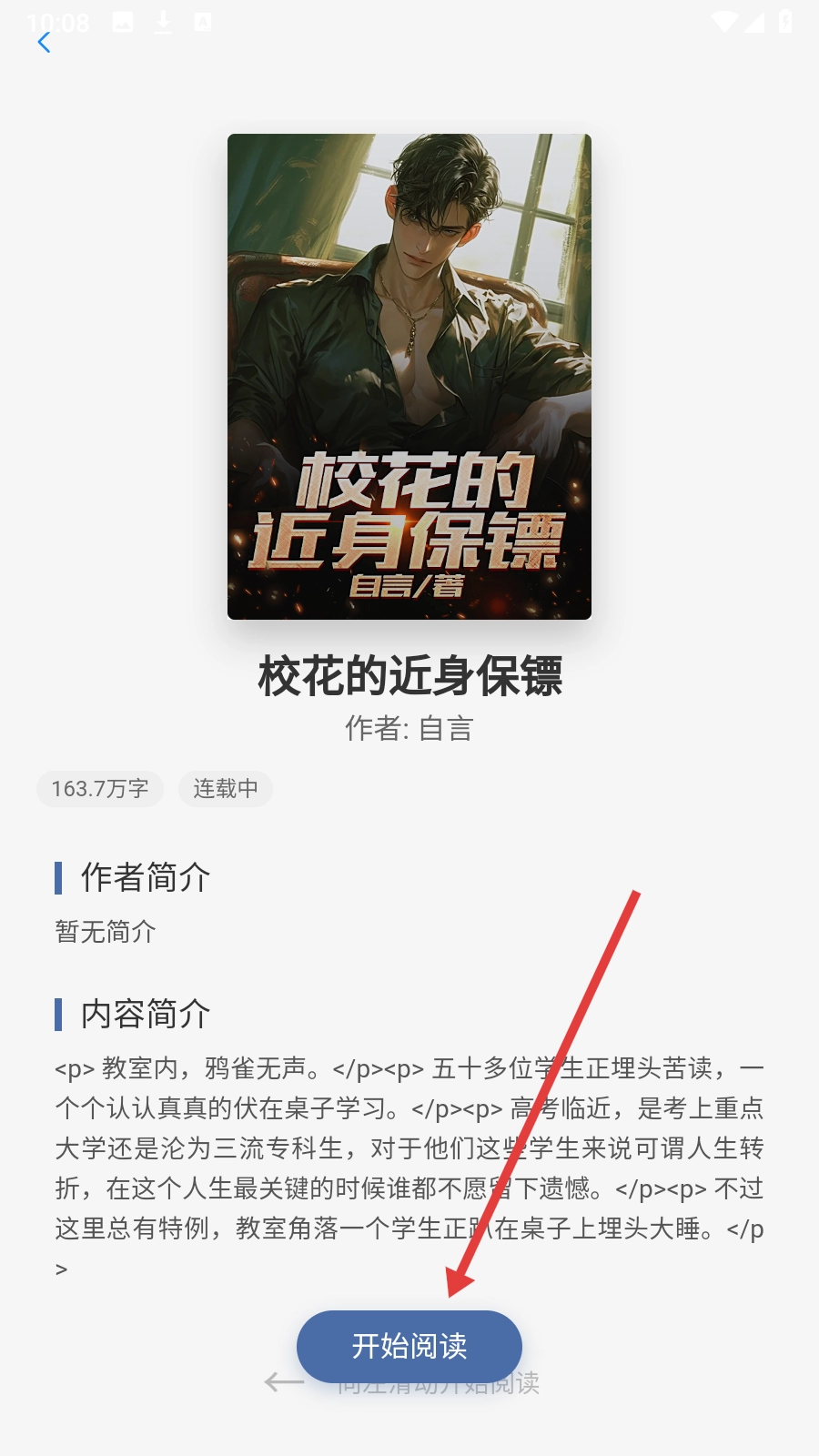 3、详情页点击【开始阅读】,进入小说阅读页面。