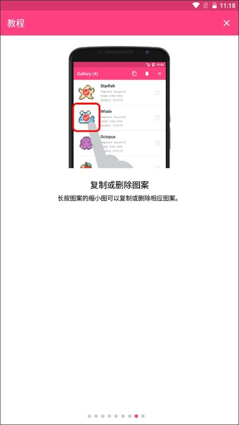 长按图案的缩小图可以复制或删除相应图案。