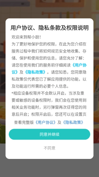 1. 若有朋友想使用这款做菜软件,可先进行下载安装,随后点击同意。