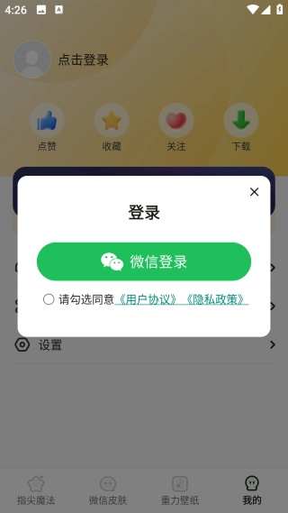 1、下载安装后,进入【我的】界面,使用微信登录账号。