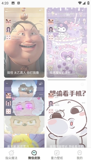 2、打开【微信皮肤】界面,浏览选择心仪的动态壁纸。