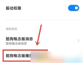 4、进入后,点击“酷狗音乐概念版播放控制条”。