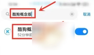 3、搜索找到酷狗音乐概念版打开。