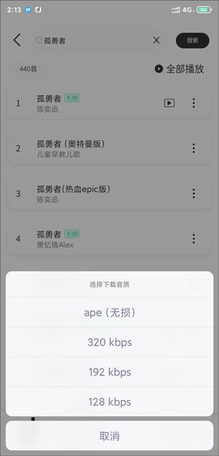 4、提供了标准、无损等音质可选,建议选择无损音质的;