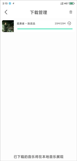 5、在下载中心里,可以看到刚才下载的歌曲了。