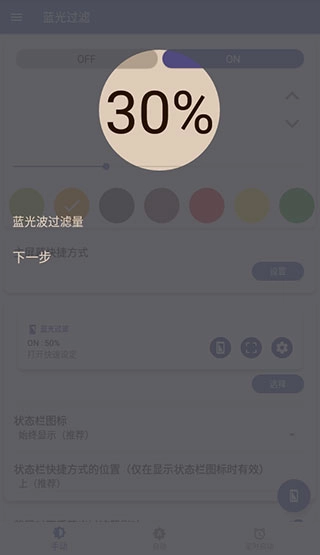 2、百分之三十表示的是蓝色光波过滤量,数值越高屏幕将越暗