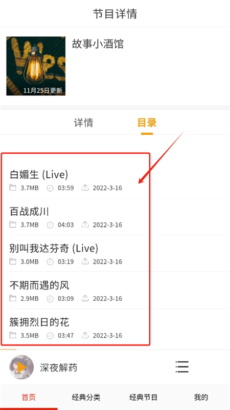 3、选择自己感兴趣的,查看完整目录,播放自己想听的内容
