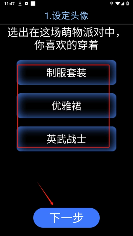 4、选择喜欢的头像色调,再挑选你在“萌物派对”中想穿的服装。