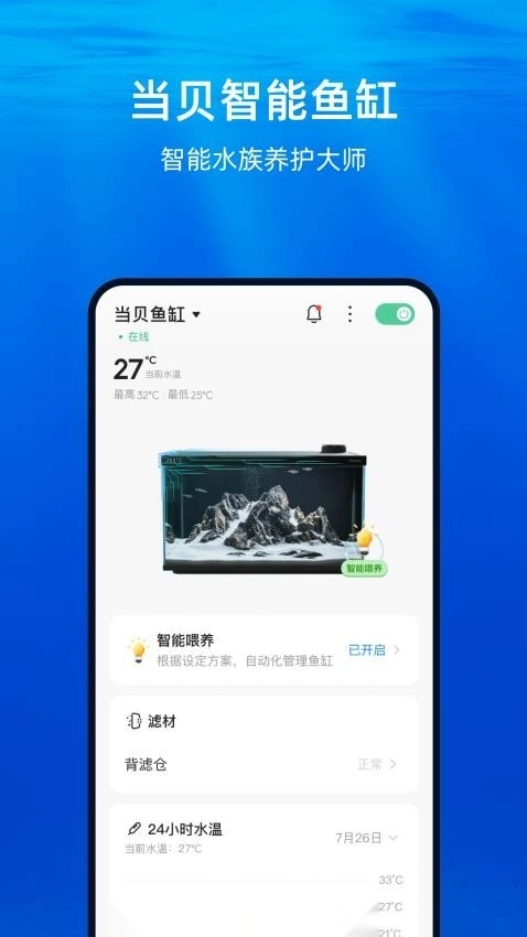 设备连接成功后,即可在应用中实时管理鱼缸状态。