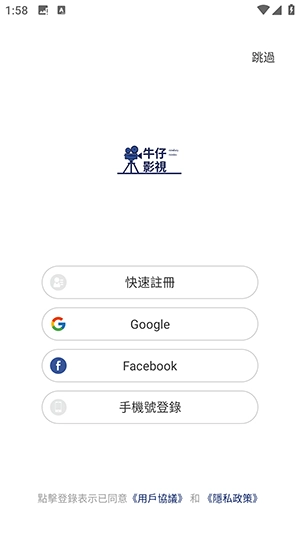 1. 打开软件,登录注册页面便会呈现,此时也能够直接点击右上角进行跳过。