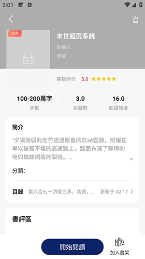 2、点击感兴趣的小说,在详情页面中,点击开始阅读。