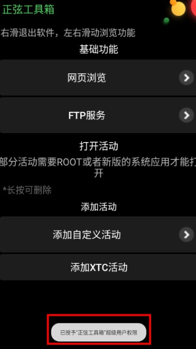 进入软件后如果有root权限可以授予