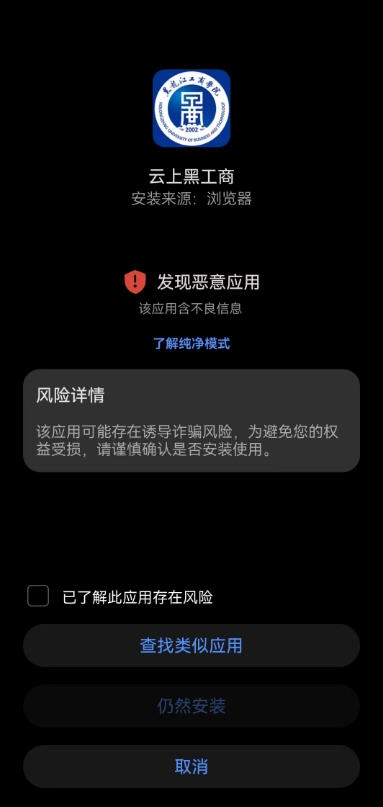 因企业证书尚处于申请阶段,此应用会显示为风险应用,不过并无安全隐患。点击可了解风险详情。