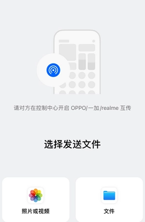 打开应用后,对方可直接通过OPPO/一加/realme互传给本设备发送文件。