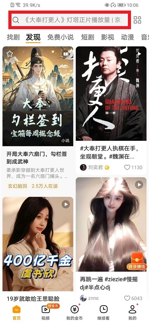 2. 在搜索框中输入你想看的影视剧名字,这里小编以《大奉打更人》为例。
