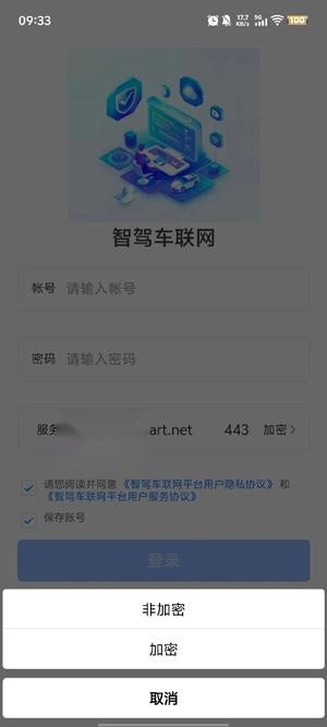 点击下方的服务器地址,选择加密或者非加密,点击登录。