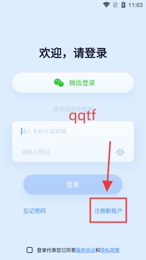 打开你的Wosee软件,在登录界面点击下方的新账号注册。