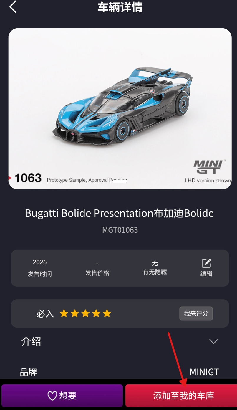 3、车型收藏:当发现心仪的车型时,点击页面上的收藏按钮,就能把它添加到 “我的车库” 里,方便后续查看。