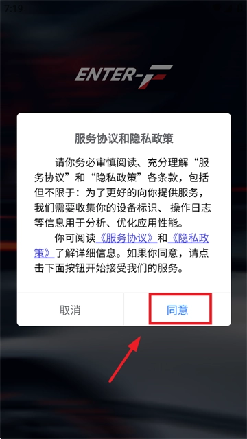 1、下载安装并打开车仔助手APP,先同意服务协议和隐私政策