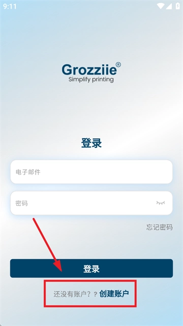 下载安装并打开grozziie,进入登录页面后点击还没有账户??创建账户
