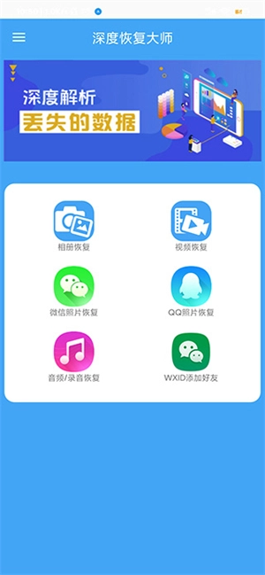 深度恢复大师手机版,堪称一款专业且实用的手机数据恢复软件。它具备多种强大的恢复功能,像相册恢复、视频恢复,以及微信和 QQ 照片恢复等都不在话下,恢复成功率极高。不仅如此,深度恢复大师手机版还能对手机空间进行全盘扫描,并且与众多机型系统完美兼容。要是你不小心误删了数据,赶紧来深度恢复大师手机版,助你轻松找回!