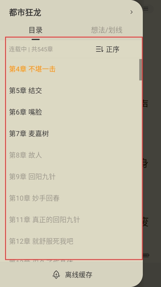 2. 在展开的各项选项里,点击“目录”,即可打开章节列表。