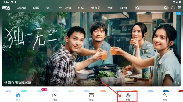 1. 开启视频应用,轻点底部的体育选项,进而进入体育内容页面。