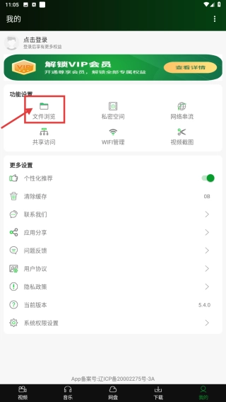 2. 于个人中心处,点击文件浏览功能选项,随即进入文件浏览界面。