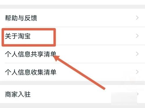 2. 进入列表页面后,寻找到“关于淘宝”选项并点击它。