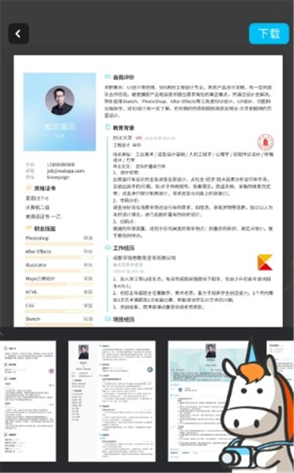 2. 软件中包含大量简历模板可供套用,能迅速完成简历内容的制作。