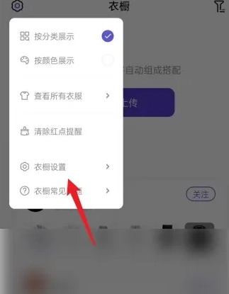 2. 当进入设置页面后,寻找到【衣橱设置】并点击它。