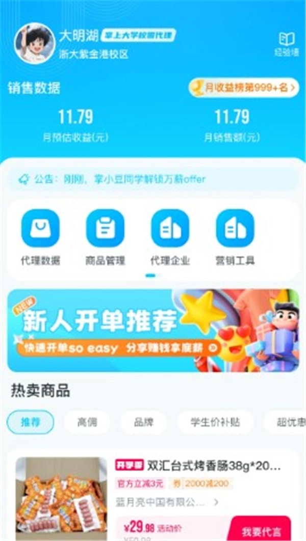 1. 对校园店粉丝页进行了升级,升级后楼长能够查看合作寝室用户的购物动态。