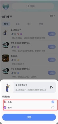 3、挑选与铃声匹配的功能类型,确认无误后点击“设置”就行。