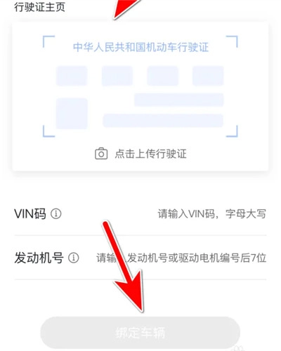 4、按照提示,输入车辆的VIN码与发动机号,然后点击“绑定车辆”就可以了。
