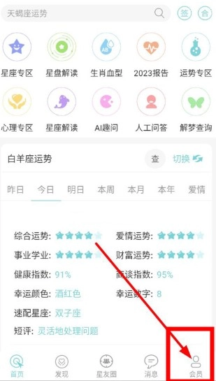 开启星座运势大全,于首页寻觅“会员”入口,进而踏入会员中心。