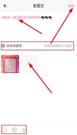 - 图文发布步骤如下:首先挑选照片或视频,接着撰写文案,然后添加表情与话题,再设置发布范围,最后点击“发布”即可完成整个操作。