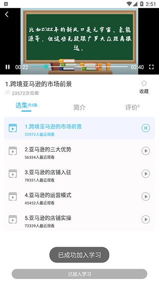 3、要是你希望下次能继续观看,也可以把它添加到学习内容里。