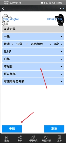 6、在对局开始前,会先由好友挑选对局模式,挑选完毕后点击申请按钮。