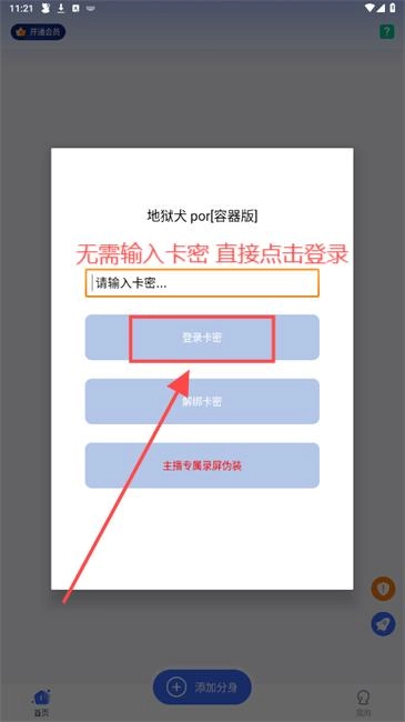 3、无需输入卡密,直接点击“登录卡密”按钮即可进入。