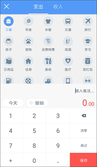 2、用户可借助上方给出的图标,挑选自身消费或收入的标签,接着在下方输入对应数据以作记录。