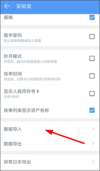 4、当您进入“设置”界面后,可借助“实验室”功能进行账单数据的导出或导入操作,这能让您更便捷地管理账单。对此感兴趣的朋友不妨一试!