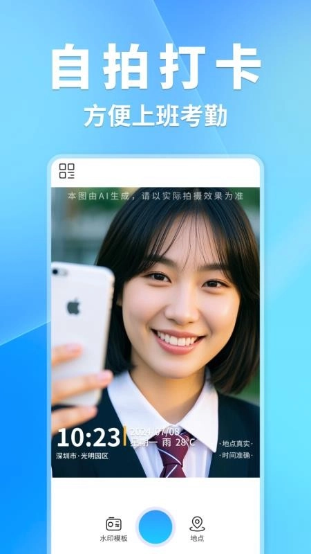 能够依据你所处的位置以及当下时间,进行带有水印的拍照打卡,如此一来,后续就能为照片增添日期、地点等相关信息。
